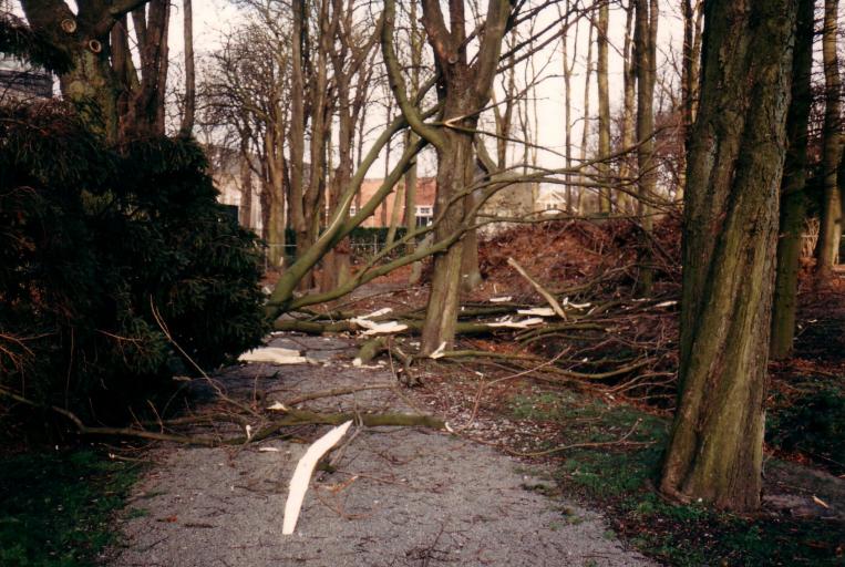 Op 25 januari 1990 nadert een diepe depressie West Europa vergezelt van een zeer zware storm met windkracht 11. De wind is zo krachtig dat in de loop van de middag het weg- en spoorverkeer over de Moerdijkbruggen wordt stilgelegd. Het Arboretum Oudenbosch wordt niet gespaard. Met name de Kastanjebomen ten zuiden van de grot worden hard geraakt. 5 bomen verliezen hun hele top en van de overige 23 bomen worden tientallen takken afgescheurd, sommige met een diameter van 40 cm en meer. Even wordt door ons gevreesd dat dit het einde van ons project zal zijn, maar van alle kanten komt hulp om de boel op te ruimen en dat geeft ons weer moed.
