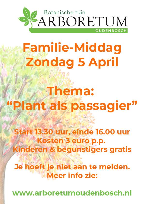 Op 1e Paasdag is het Familie-middag met een voor jong en oud leerzaam en onderhoudend programma rondom het thema “Plant als passagier”. Een speurtocht door de tuin leid je langs alle activiteiten en informatieborden met uitleg over het thema. Naast het maken van een lentebloemstukje en of een botanische tekening kun je kiemgroente zaaien die je na enkele dagen thuis kan opeten. En natuurlijk wordt er voorgelezen en is er voor iedereen iets te drinken en te smullen. Het weer belooft mee te werken, zo niet dan wordt het programma zoveel mogelijk aangepast.